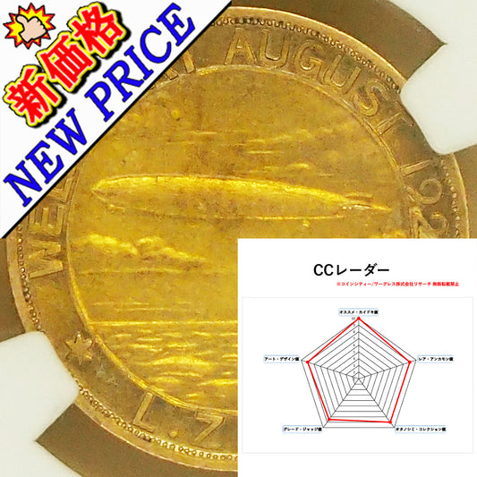🆙新価格📰★一点モノ鑑定★ドイツ ゴールドメダル 『雲上のツェッペリン』 ワールドツアー(日本にも来訪!) 伯爵「ツェッペリン」と技術者「ヒューゴ博士」 1929 AU58