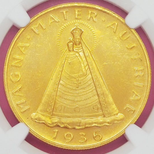 🆙新価格📰オススメ推し度⭐⭐⭐⭐⭐オーストリア 100シリング金貨 奇跡を起こすマリア像「マドンナ」不死身の意味を持つ「双頭の鷲」 金品位G0.900 1936 高鑑定PL64(NGC)