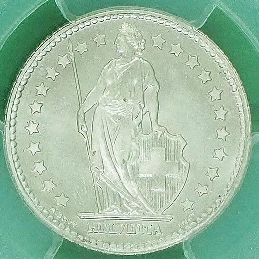 🆙新価格📰スイス 1フラン<試鋳>銀貨 スタンディング女神ヘルヴェティア 1946 稀少タイプの非流通テストパターン SP65 (PCGS)