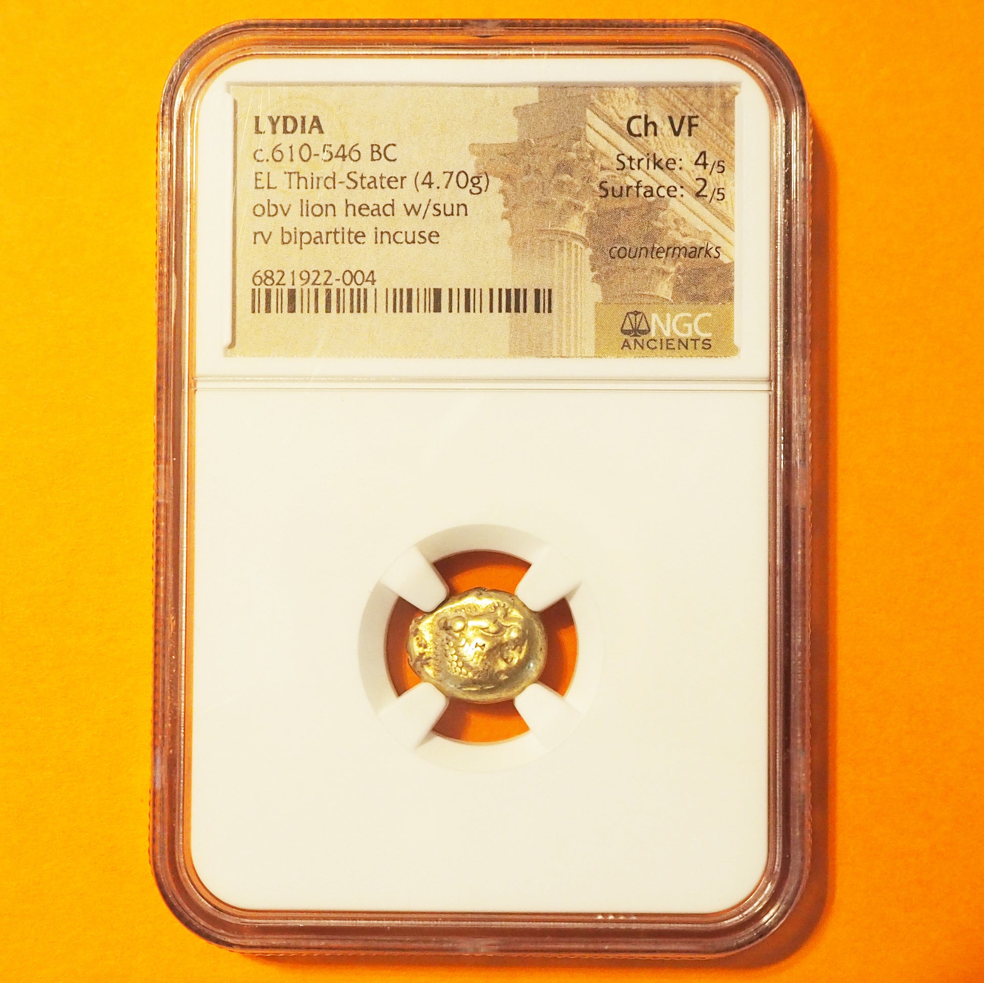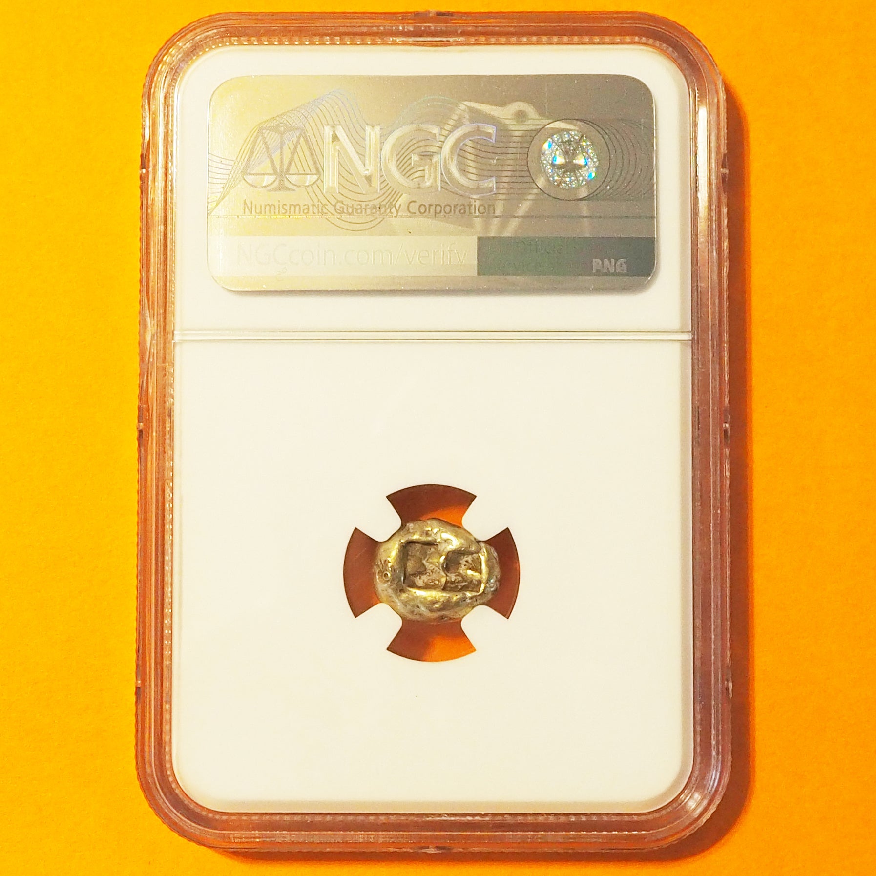 リディア王国 1/3スタテル・エレクトロン貨 権力の象徴ライオン 世界最古の金貨 c.610-546 BC Ch VF 4/5,2/5 countermarks ( NGC )