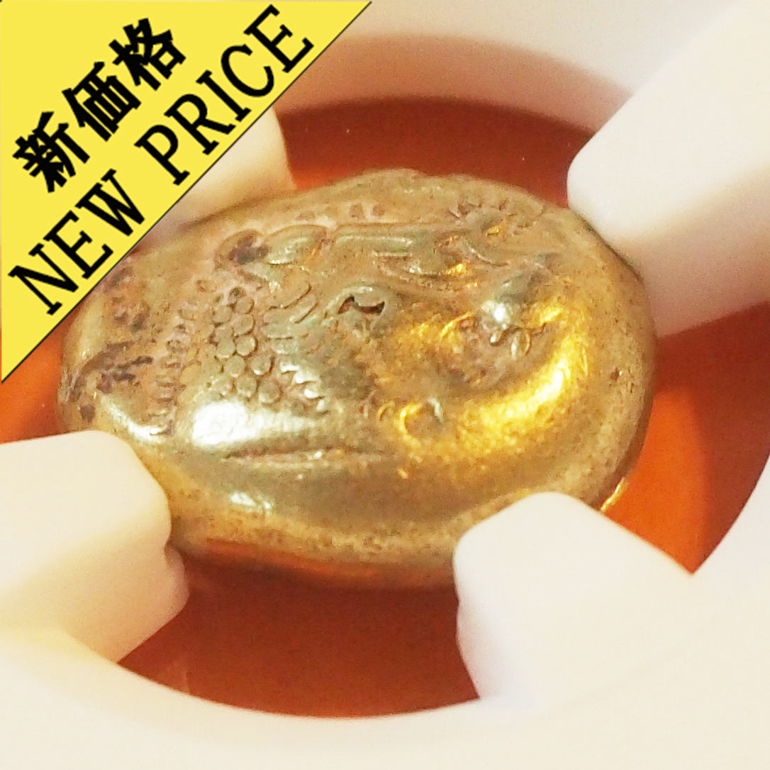 ゆがみのある楕円だったり、対称していない丸みを帯びていたりと、いびつな形状のコインも多く、古代コインの面白さを味わえる古代スタテル金貨です。